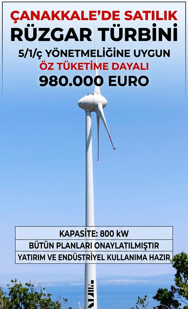 - Çanakkale'nin yüksek rüzgar verimliliğine sahip bölgesinde, tüm yasal süreçleri tamamlanmış ve öz tüketime dayalı enerji üretimine uygun rüzgar türbini projesi satışa sunulmuştur.